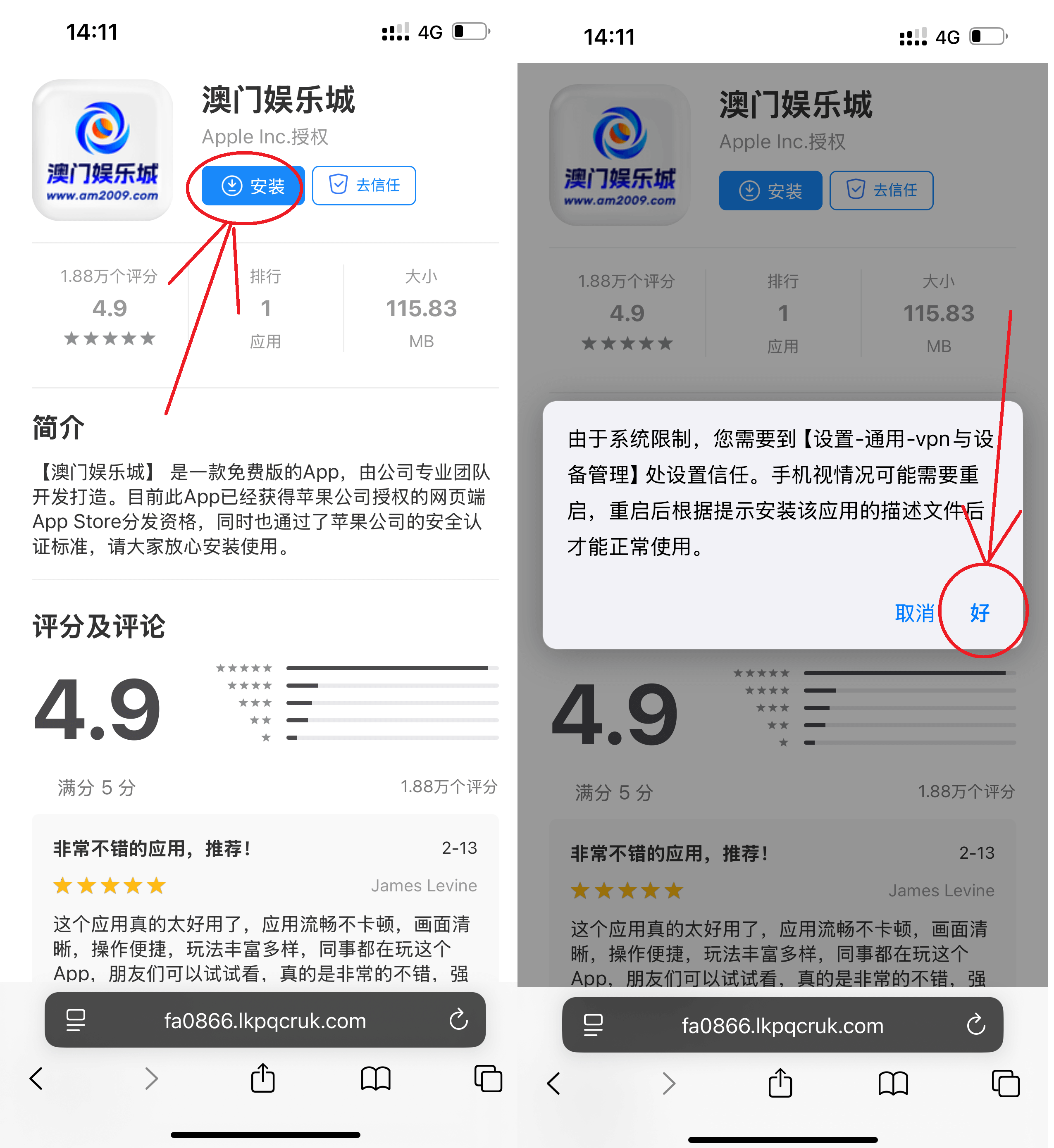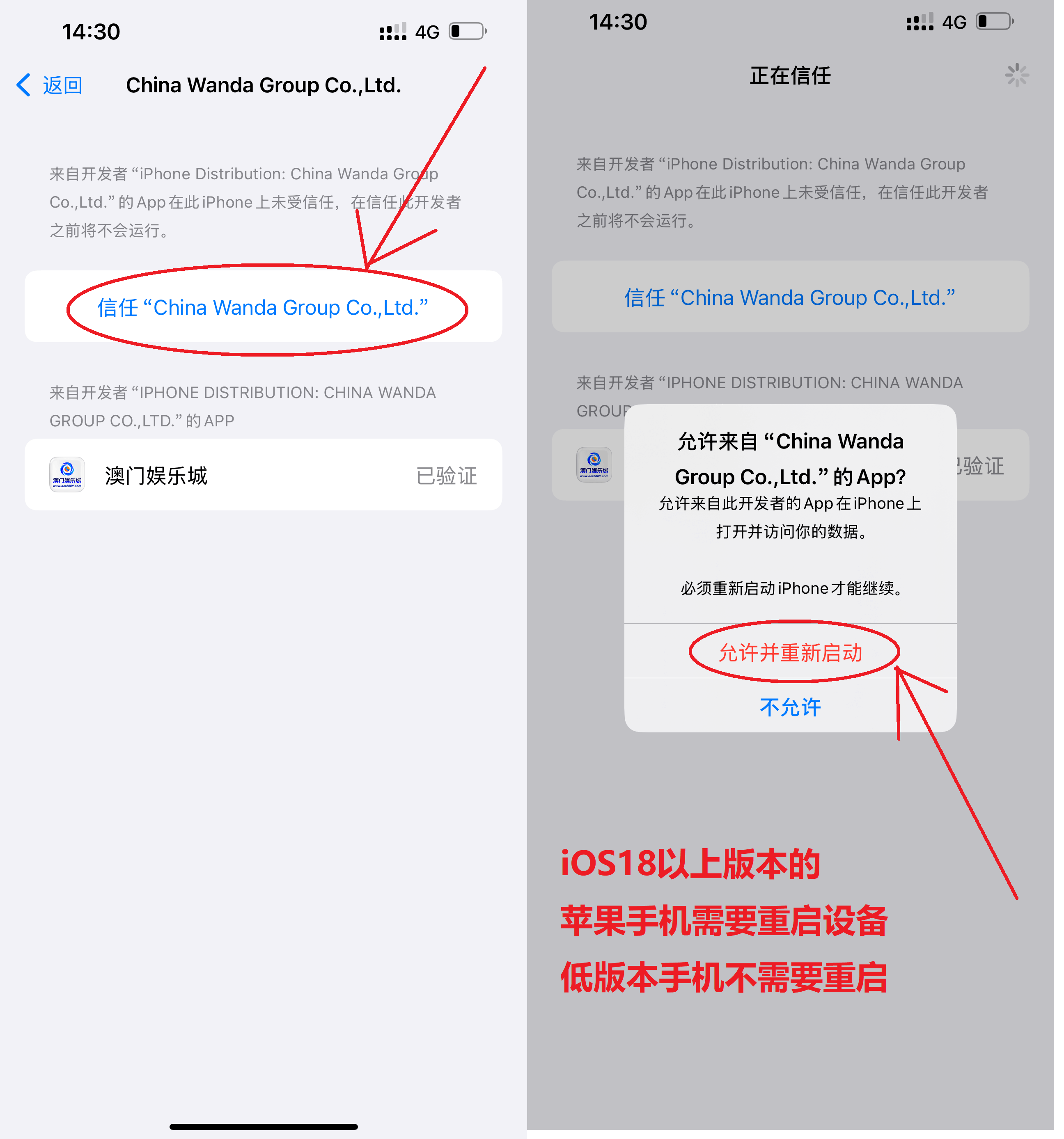 3、点击「信任」 ,回到手机桌面打开应用就成功了